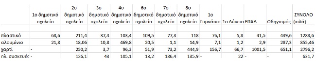 Σας παραθέτουμε τα αναλυτικά αποτελέσματα της συλλογής της ανακύκλωσης.